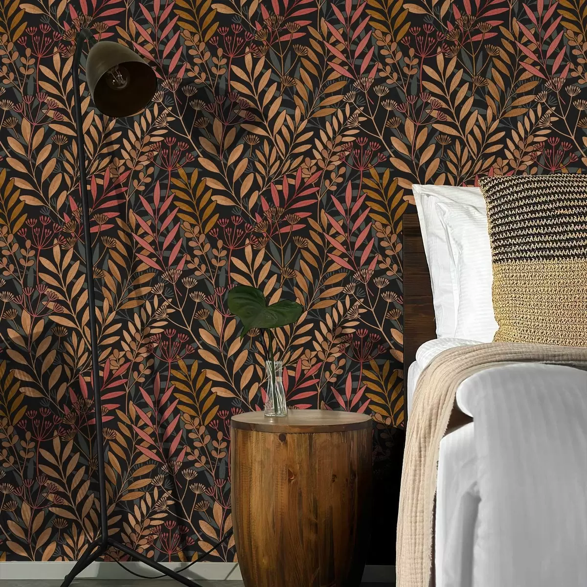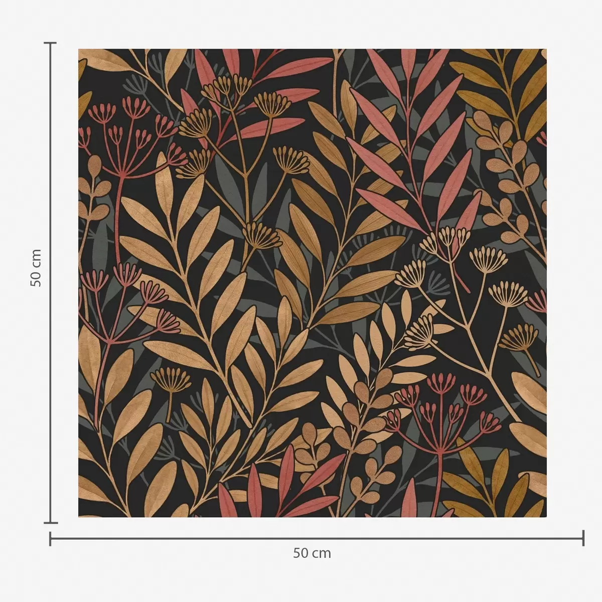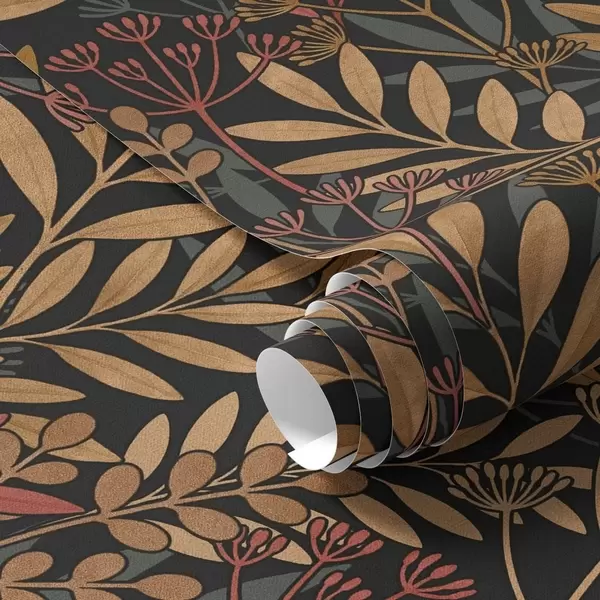 Tapetes Tumša pļava ar stilizētām lapām un sēklu pākstīm Nr. a01020