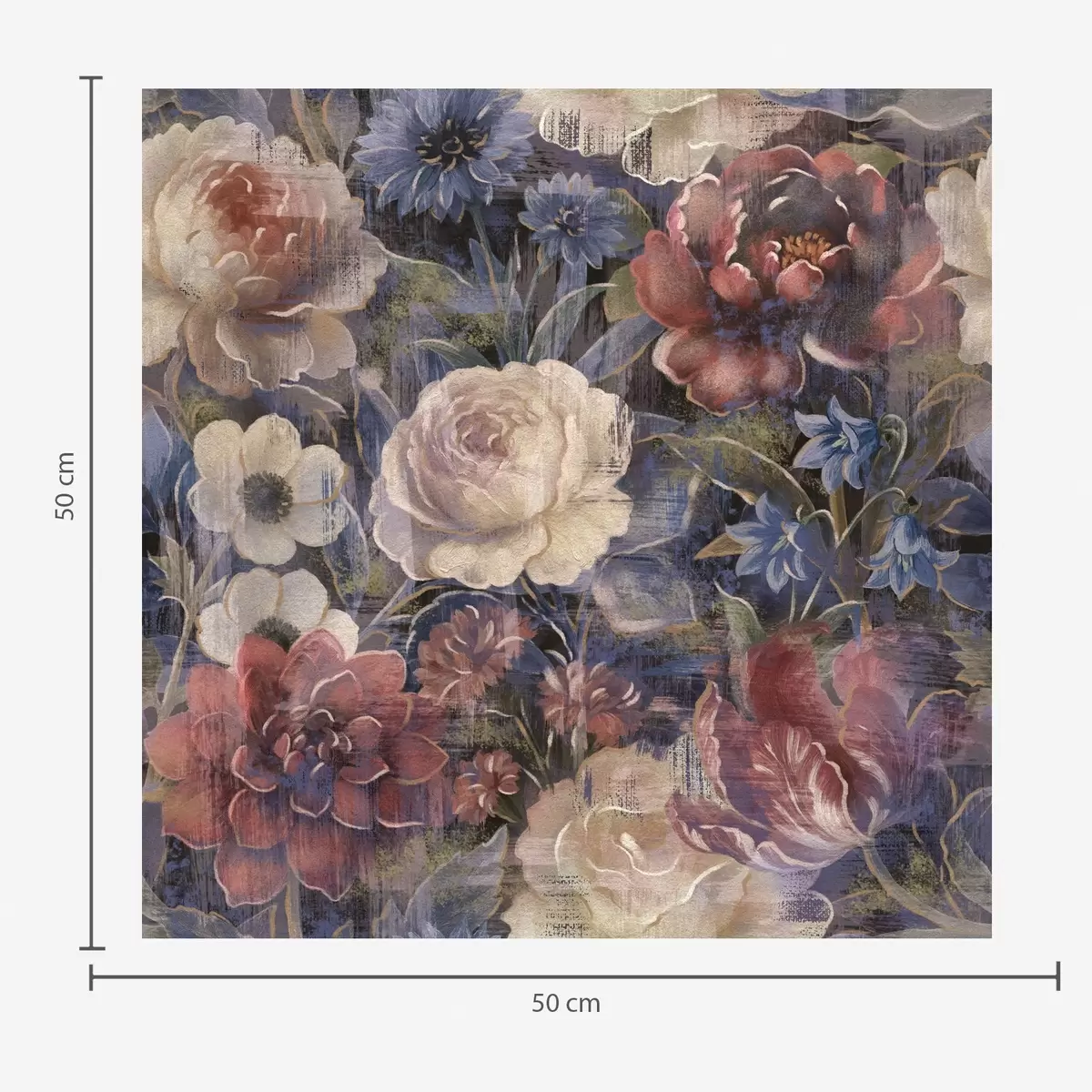 Tapetes Glezniecisks lielu ziedu pušķis uz tumši indigo fona Nr. a01021