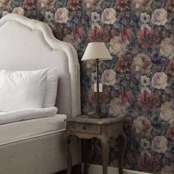 Tapetes Glezniecisks lielu ziedu pušķis uz tumši indigo fona Nr. a01021