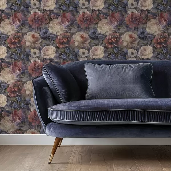 Tapetes Glezniecisks lielu ziedu pušķis uz tumši indigo fona Nr. a01021