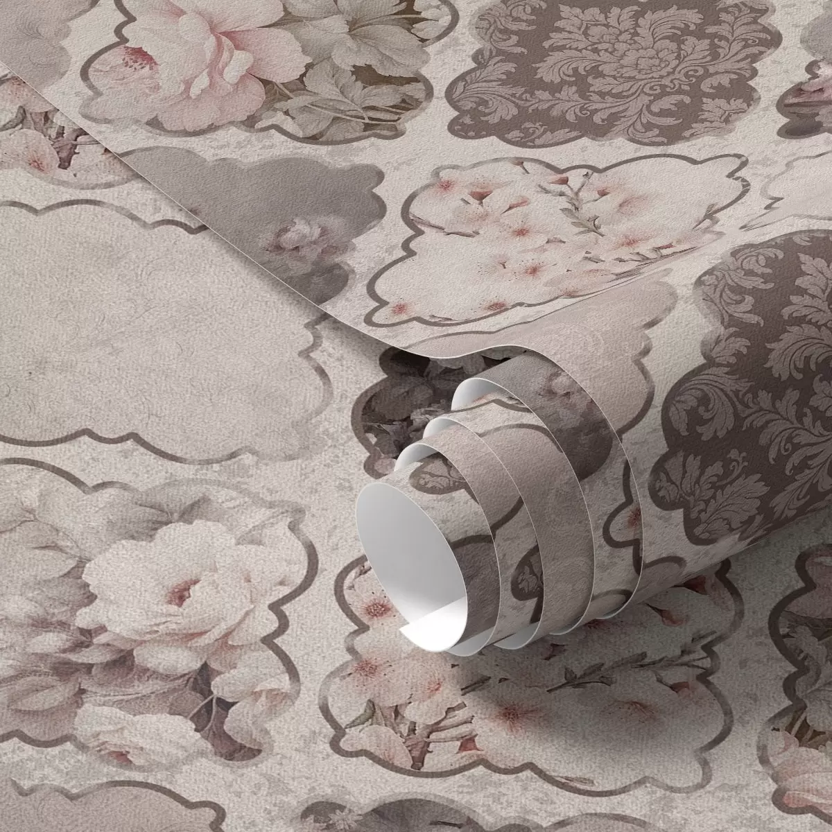 Tapetes Romantisks ziedu medaljonu mozaīka putekļainos toņos Nr. a01027