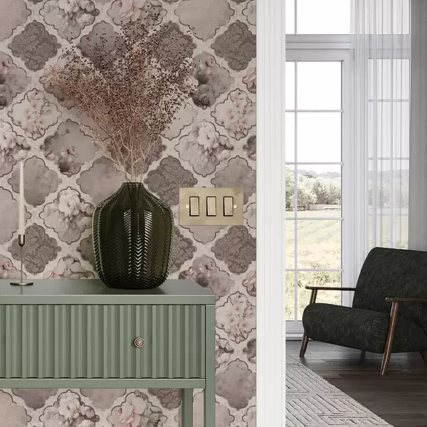 Tapetes Romantisks ziedu medaljonu mozaīka putekļainos toņos Nr. a01027