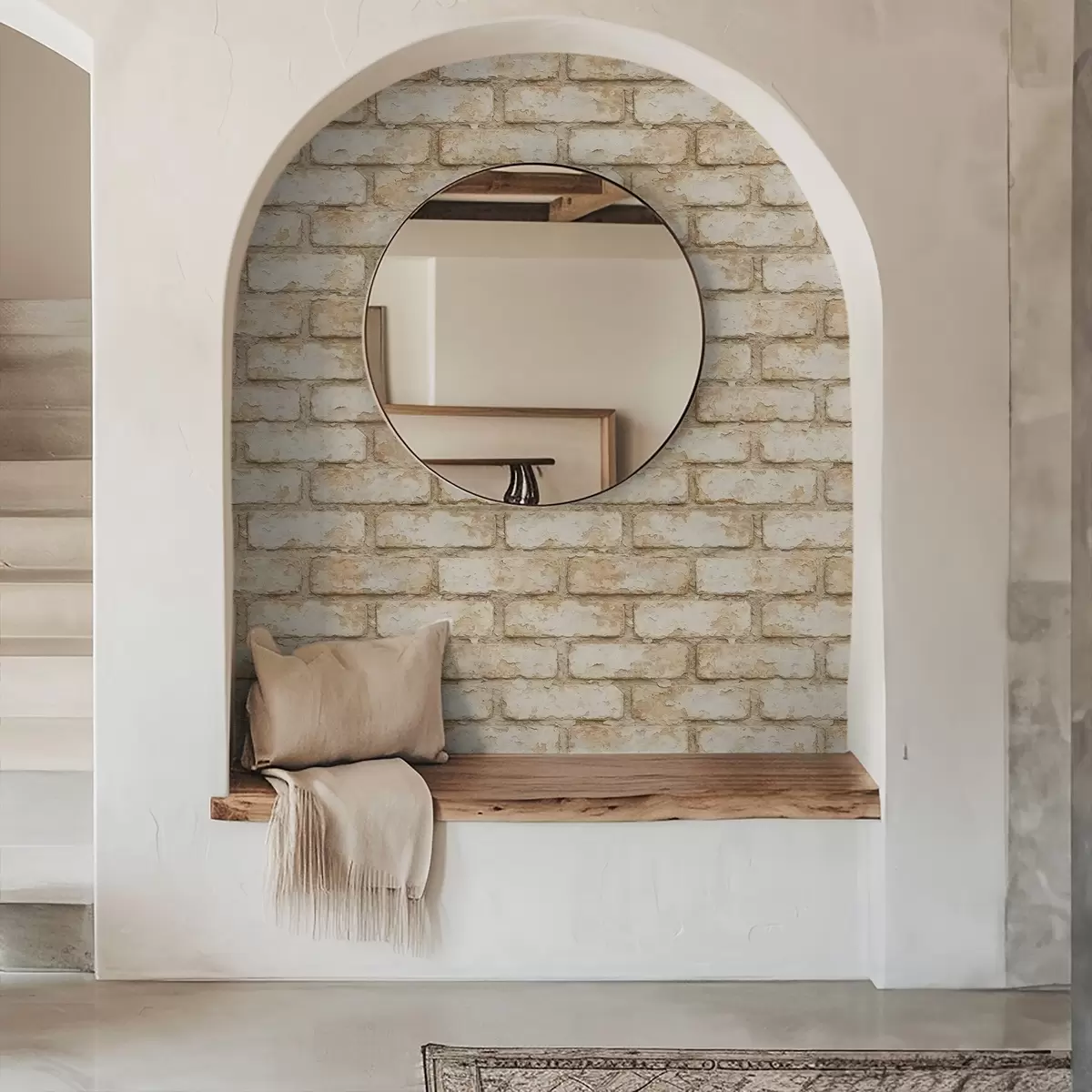 Tapetes Novecojusi gaiši smilškrāsas ķieģeļu tekstūra Nr. a01029