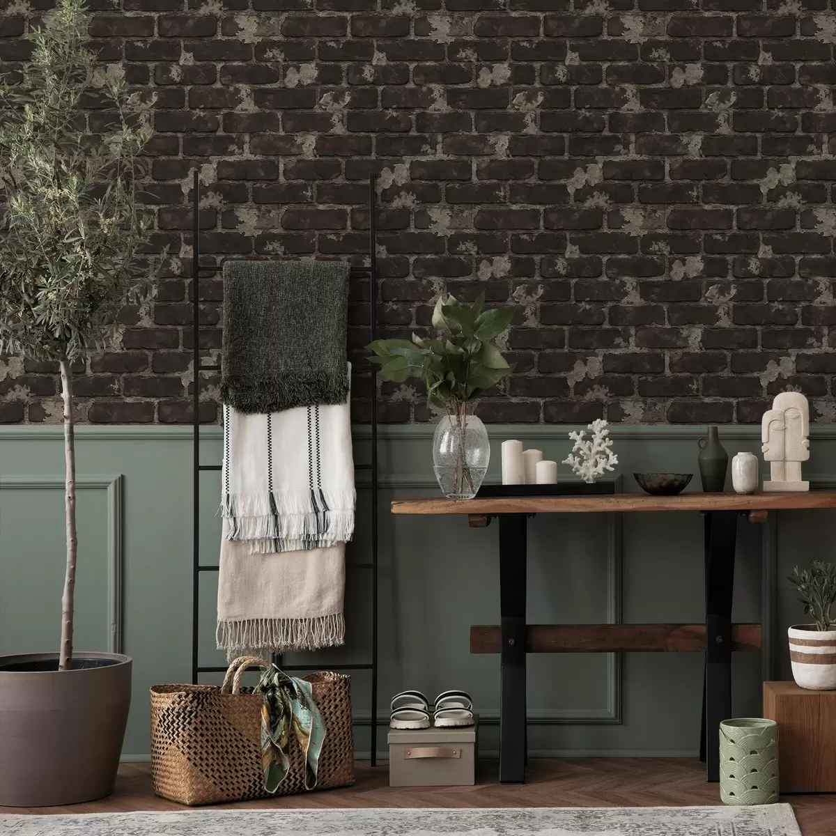 Tapetes Tumšs vecs ķieģeļu mūris ar nolietotām vietām Nr. a01030