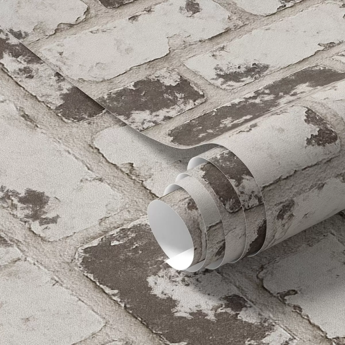 Tapetes Teksturēts balts ķieģelis ar maigu pelēku nokrāsu Nr. a01031