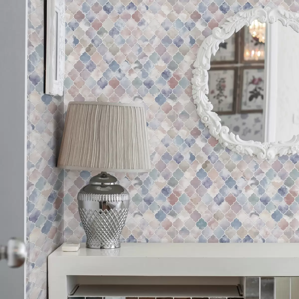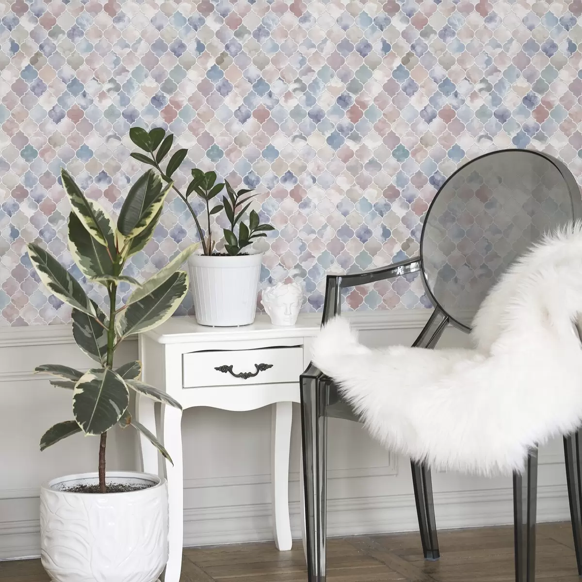 Tapetes Gaiša pasteļtoņu mozaīka ar maigām marokāņu formām Nr. a01039v1