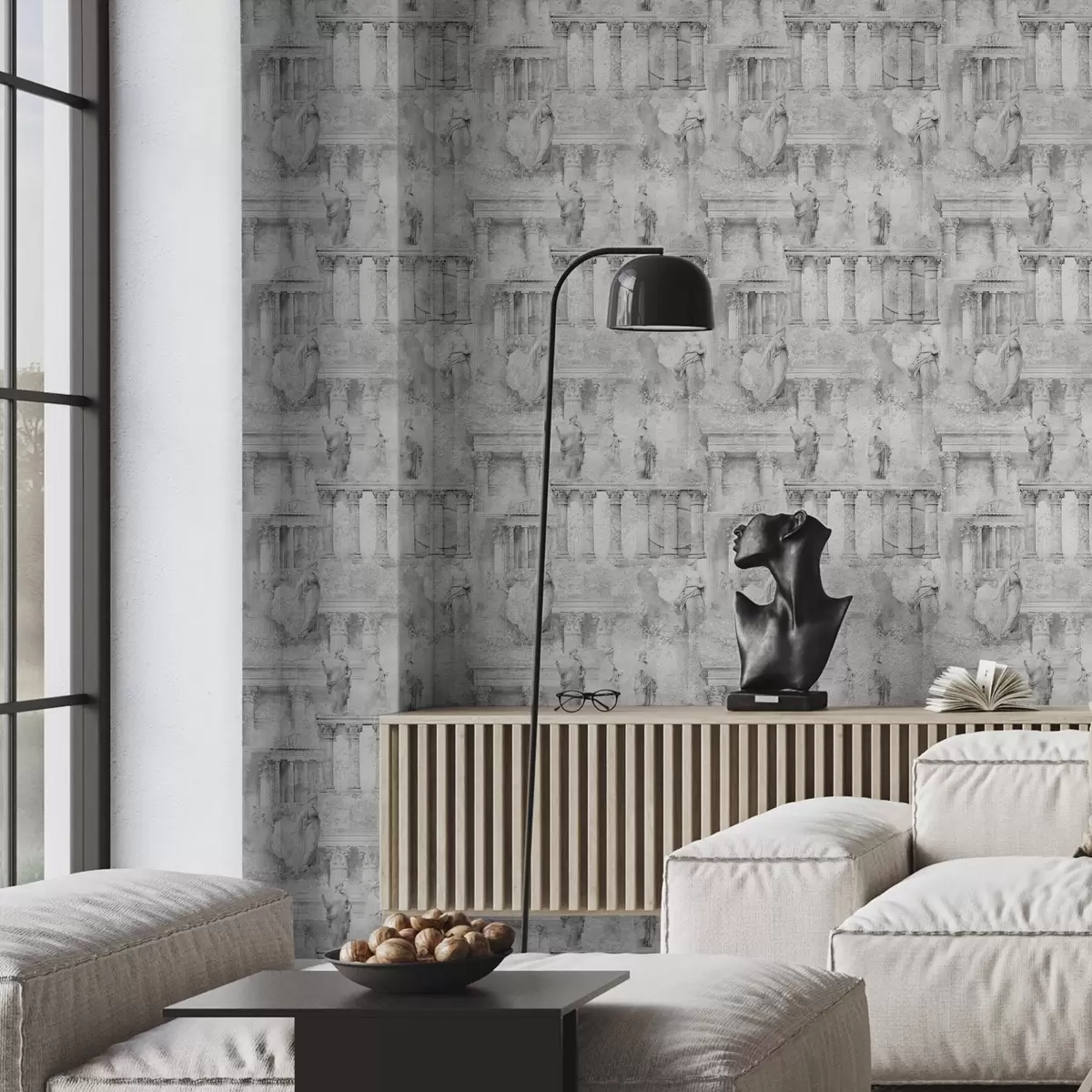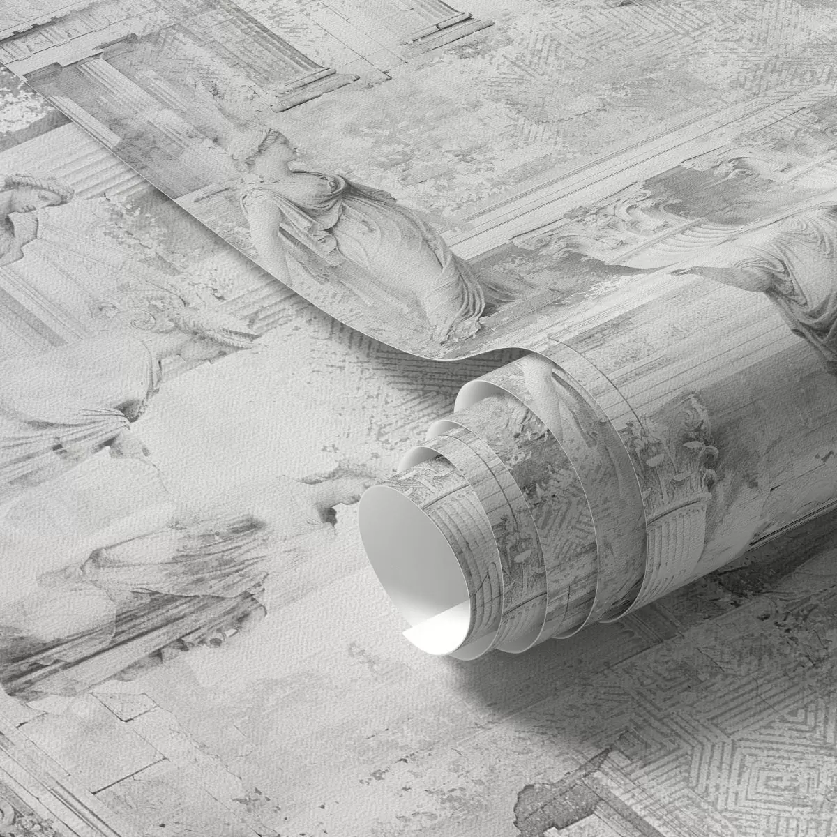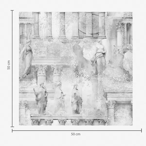 Tapetes Klasiskas statujas un kolonnas izbalējušos pelēkos toņos Nr. a01041v1