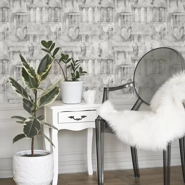 Tapetes Klasiskas statujas un kolonnas izbalējušos pelēkos toņos Nr. a01041v1