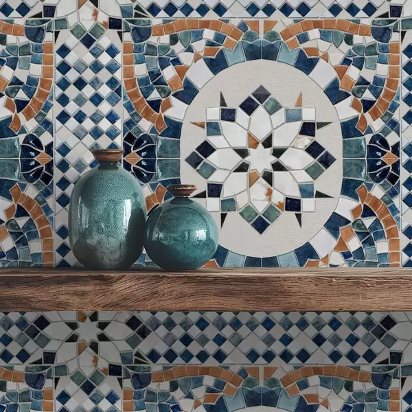 Tapetes Spilgta marokāņu mozaīka zilo-tirkīza toņos Nr. a01043
