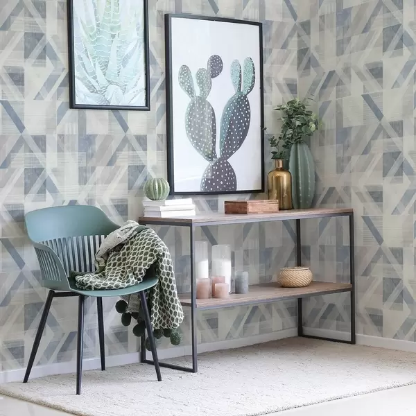 Tapetes Ģeometrisks dizains vēsās zilo-pelēkās toņos Nr. a01055v1