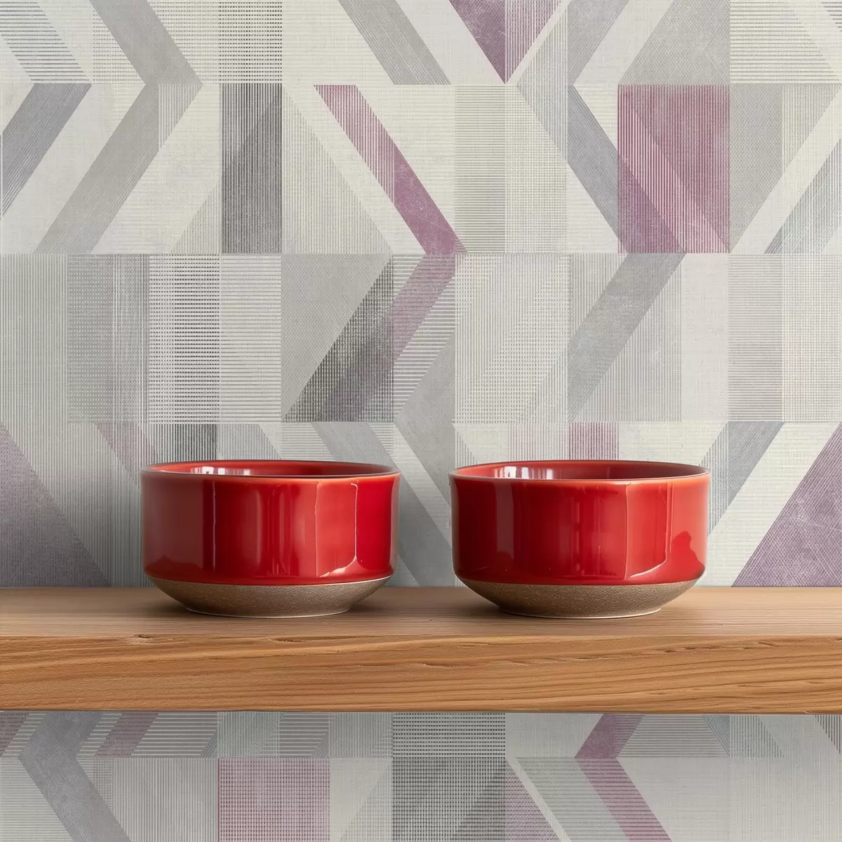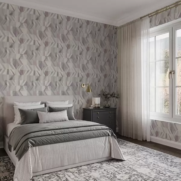 Tapetes Vieglas ģeometriskas bultas maigās pelēkā-sārti violetas toņos Nr. a01056v1