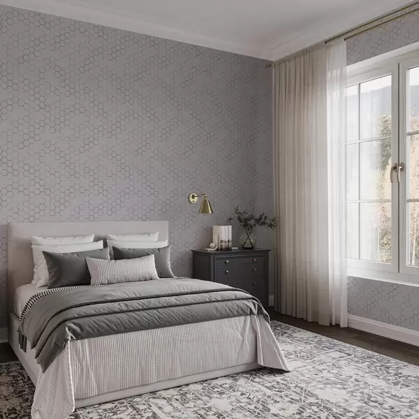 Tapetes Smalks sešstūrains režģis uz gaiši pelēka teksturēta fona Nr. a01060