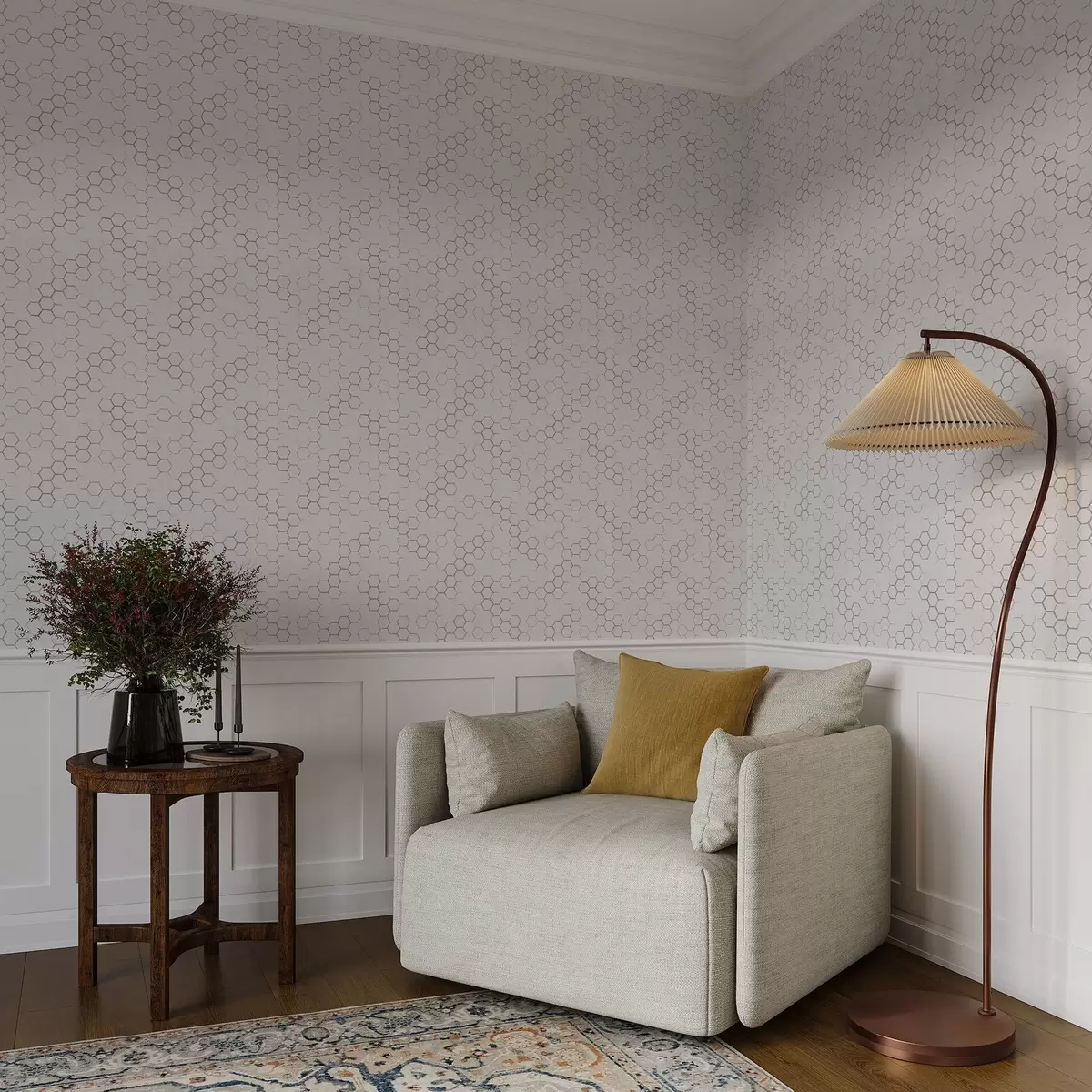 Tapetes Viegla šūnu struktūra ar plānām pelēkām kontūrām Nr. a01061