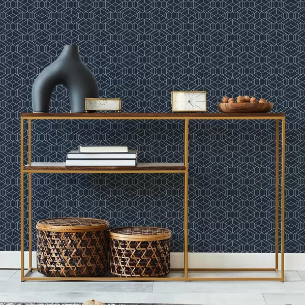 Tapetes Tumši zils kubu ģeometriskais režģis Nr. a01066v1