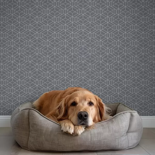 Tapetes Pelēks fons ar baltiem trīsdimensiju kubiem režģī Nr. a01067v2
