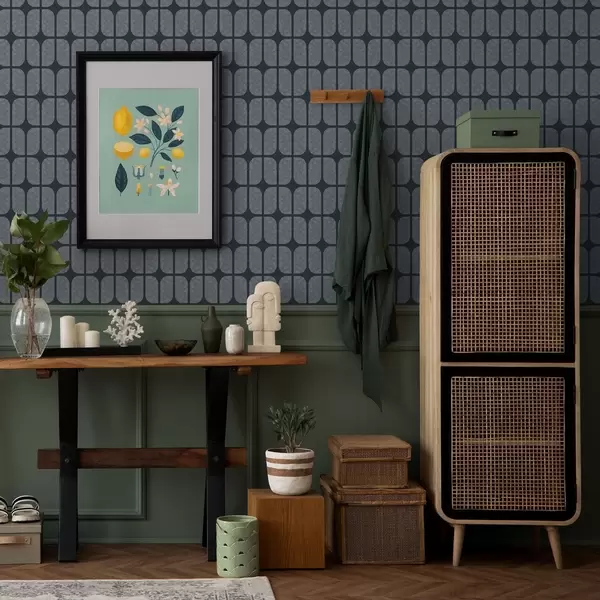 Tapetes Tumši zils fons ar pelēku mozaīku no apaļām flīzēm Nr. a01068v1