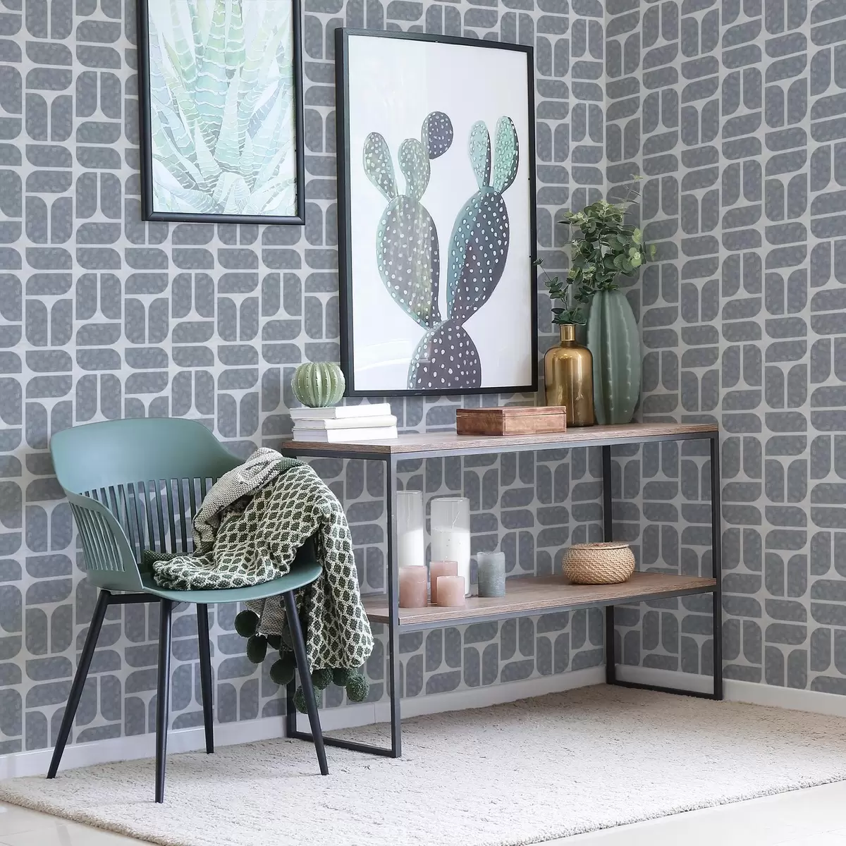 Tapetes Pelēka mozaīka, kurā mijas apaļas un taisnstūra formas Nr. a01069