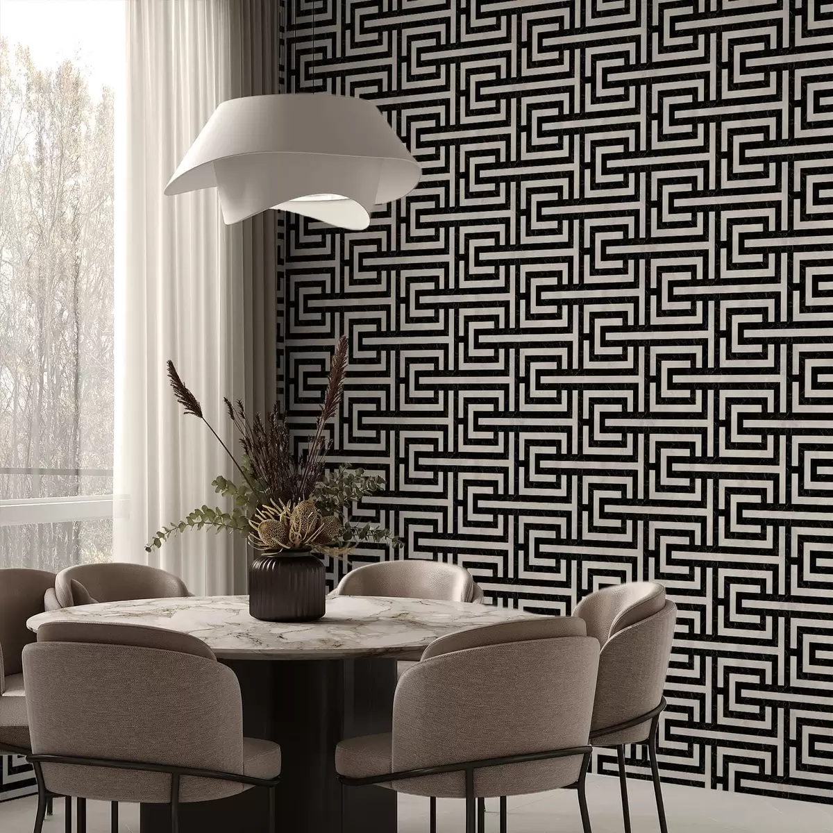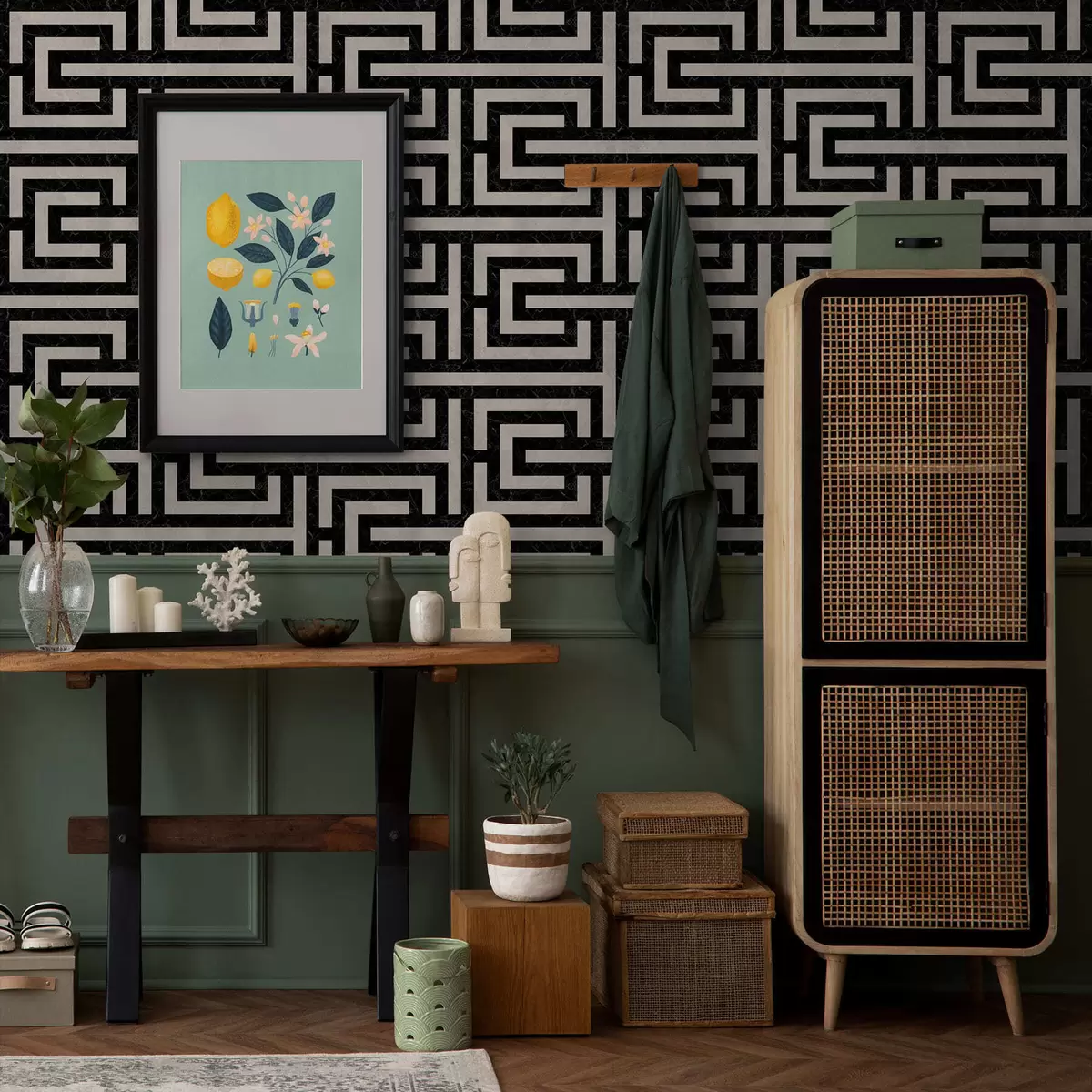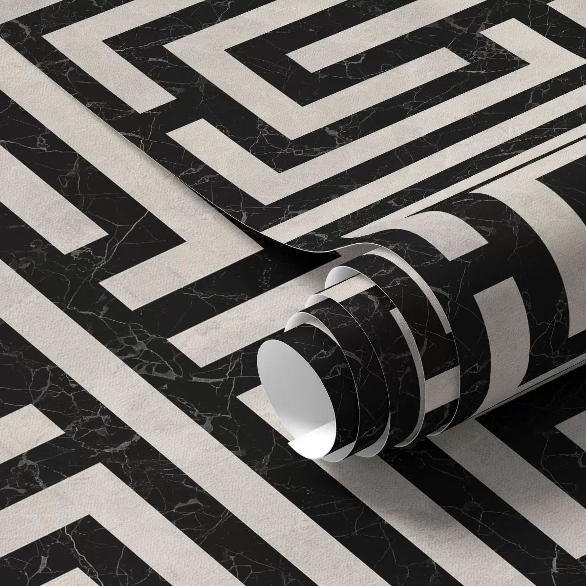 Tapetes Melna un balta ģeometriska labirinta raksts Nr. a01073