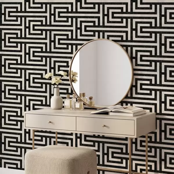 Tapetes Melna un balta ģeometriska labirinta raksts Nr. a01073