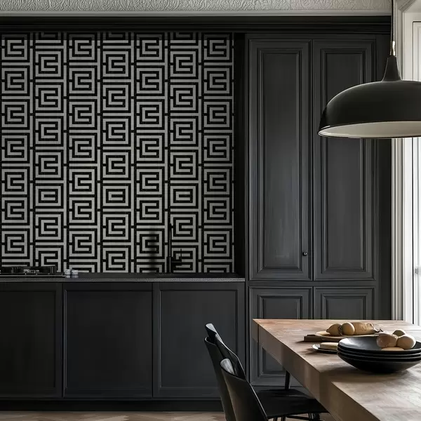 Tapetes Melna un balta ģeometriska labirinta raksts Nr. a01073