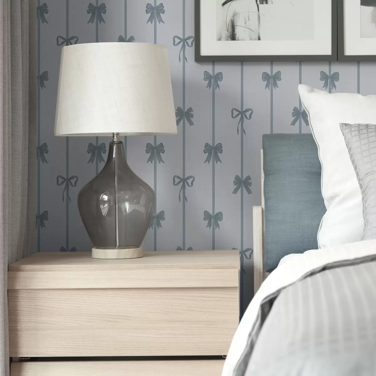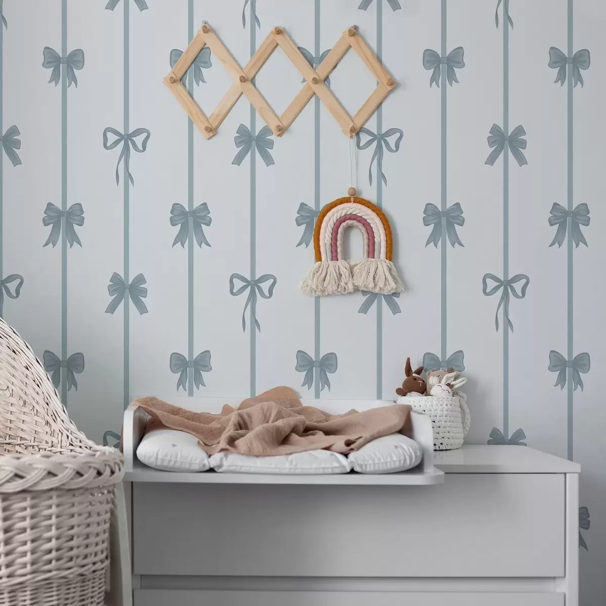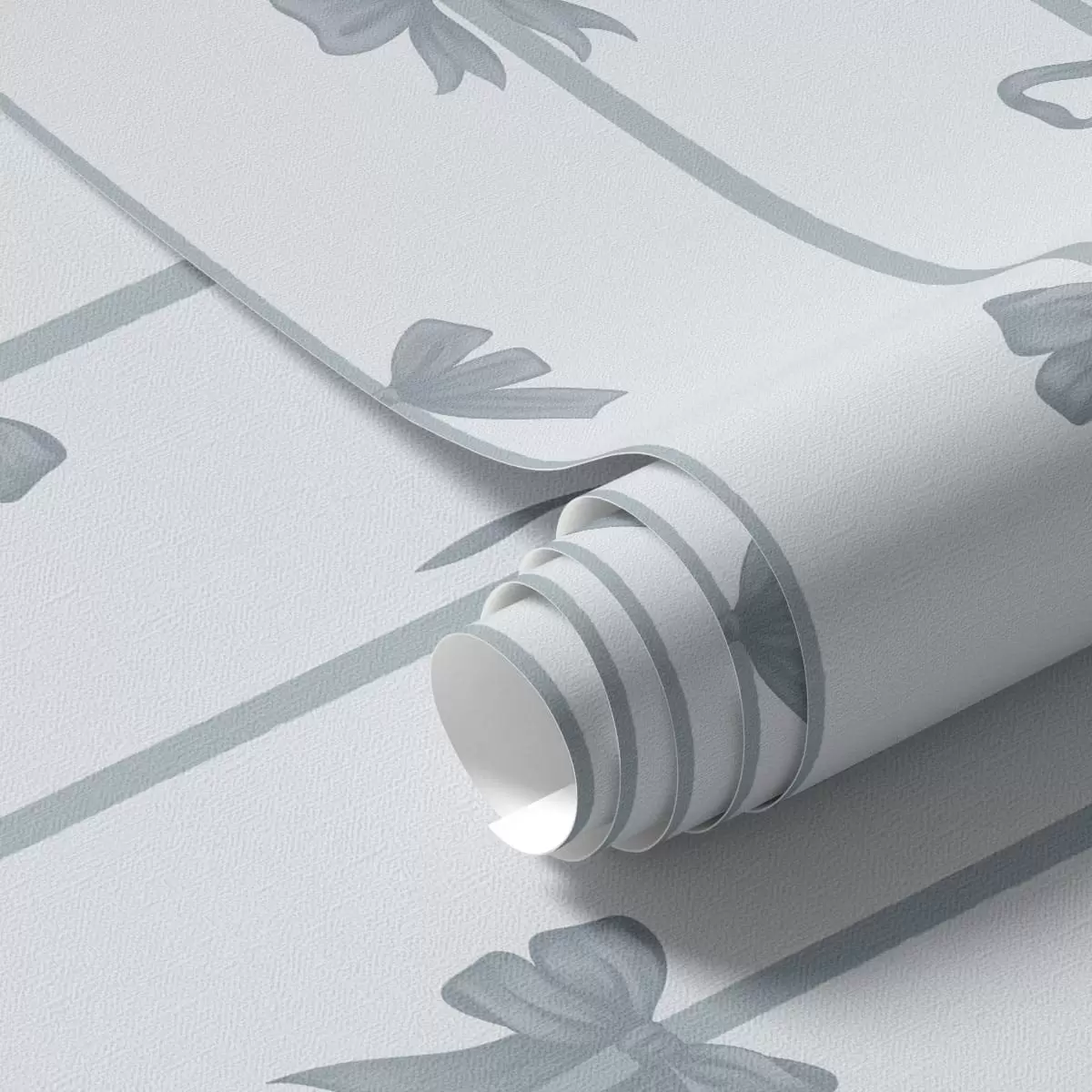Tapetes Zilas lentes ar pītiņām uz gaiša fona Nr. a01074v2