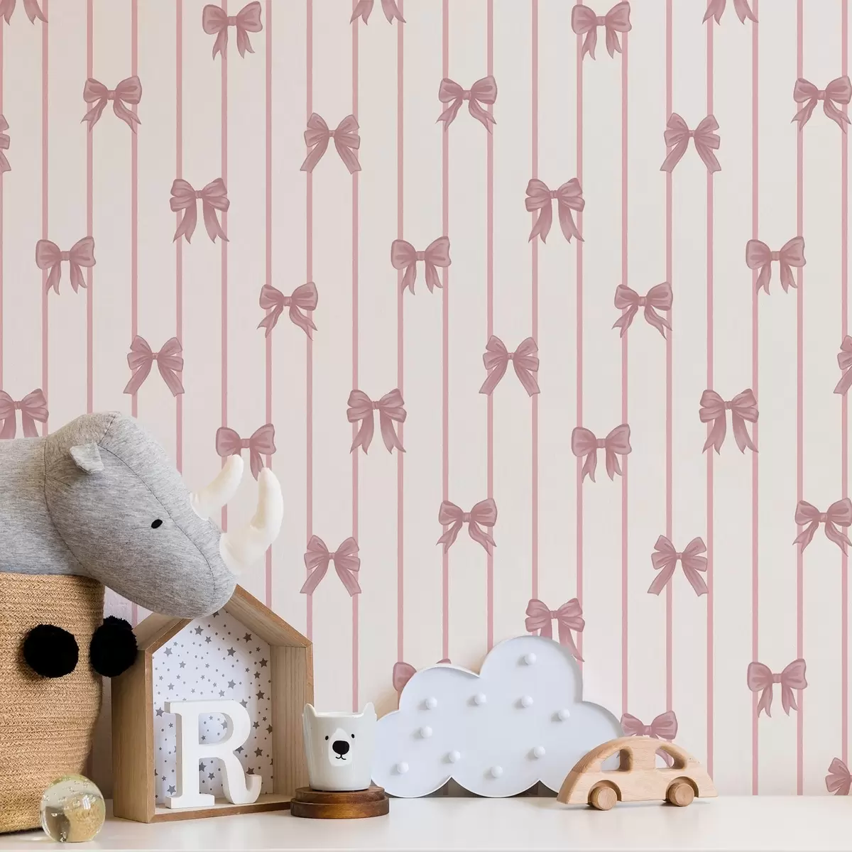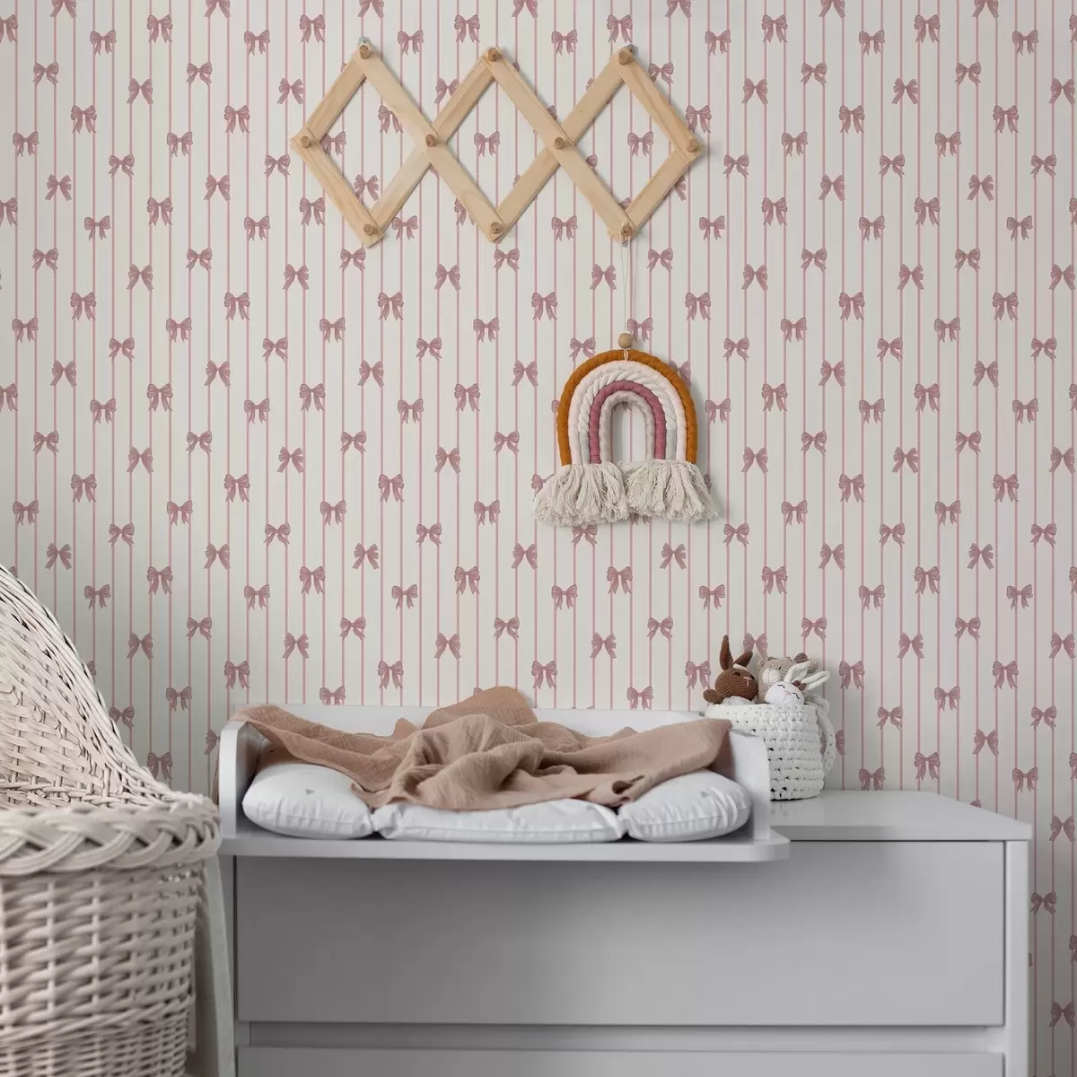 Tapetes Mazie rozā lentiņas vertikālās svītrās Nr. a01076