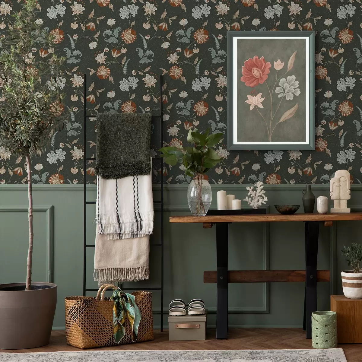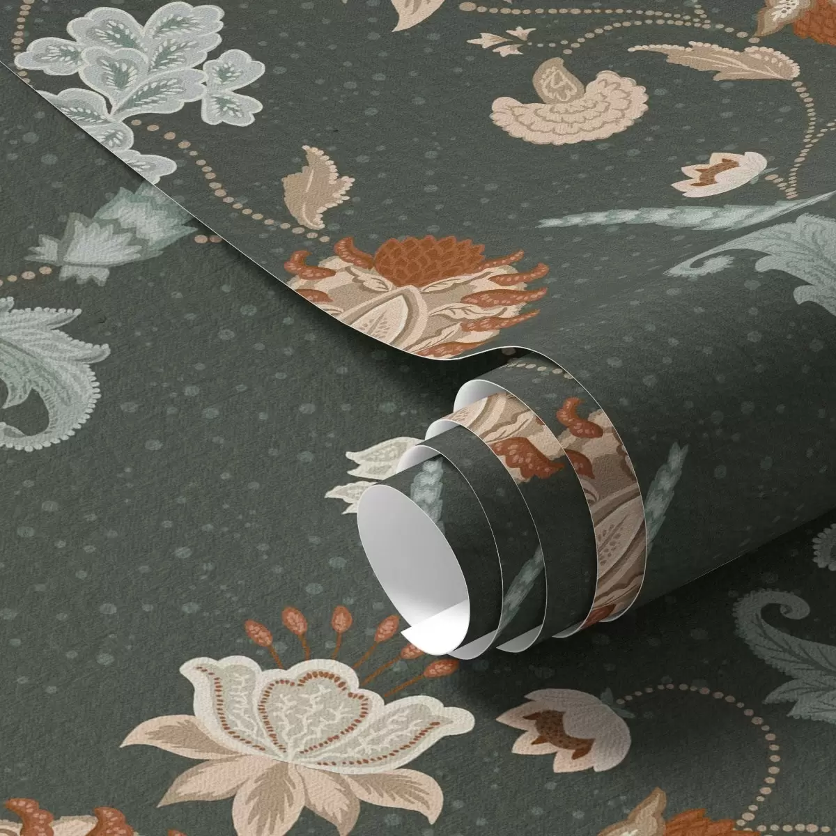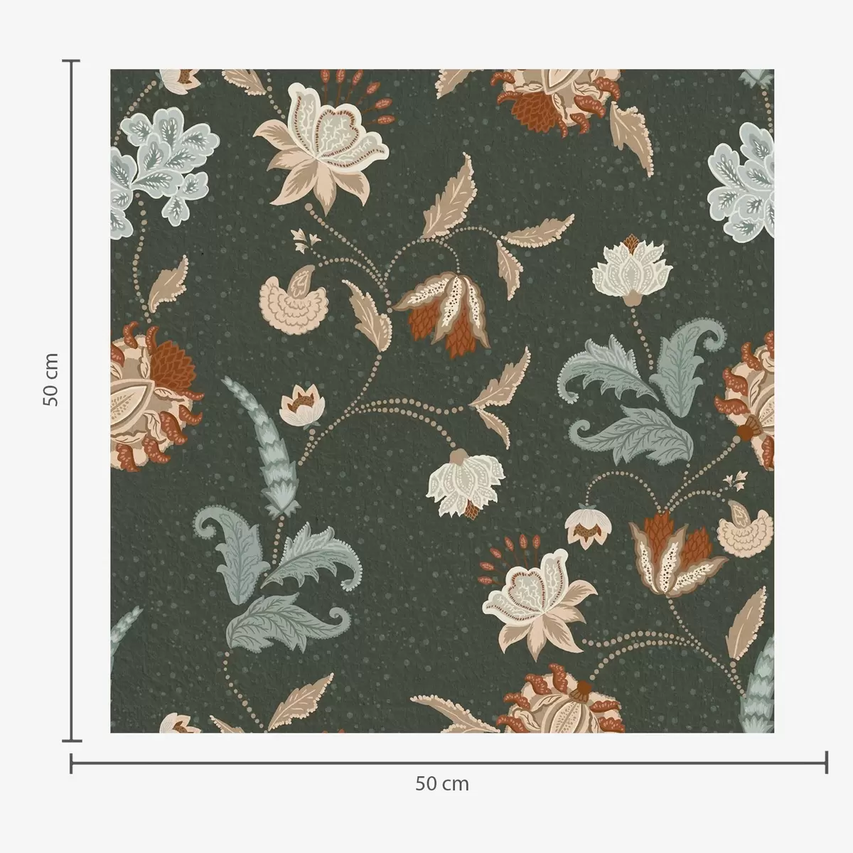 Tapetes Tumši zaļš fons ar dekoratīviem ziediem un lapām Nr. a01086