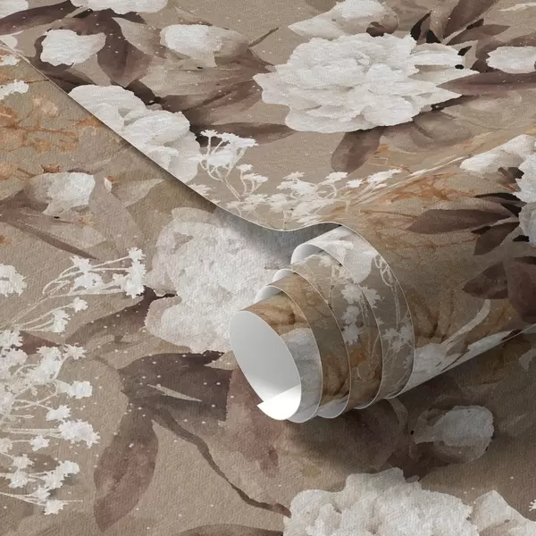 Tapetes Siltas smilškrāsas peonijas uz faktūru fonā Nr. a01087