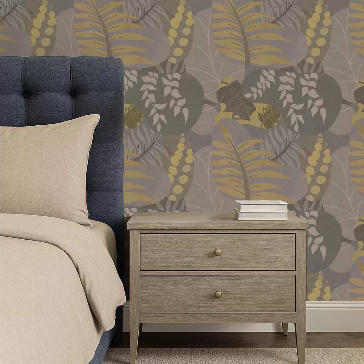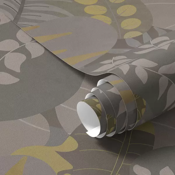 Tapetes Abstraktas lapas pelēkā un dzeltenā tonī Nr. a01112
