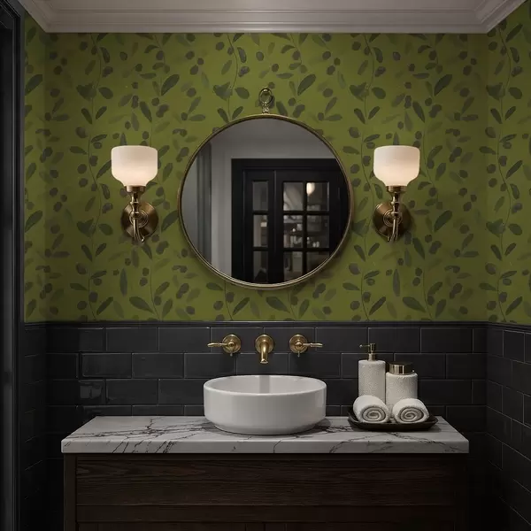 Tapetes Zaļas zaras ar lapām un ogām uz olīvu kokiem Nr. a01113