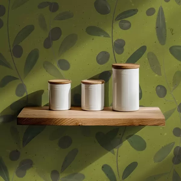 Tapetes Zaļas zaras ar lapām un ogām uz olīvu kokiem Nr. a01113