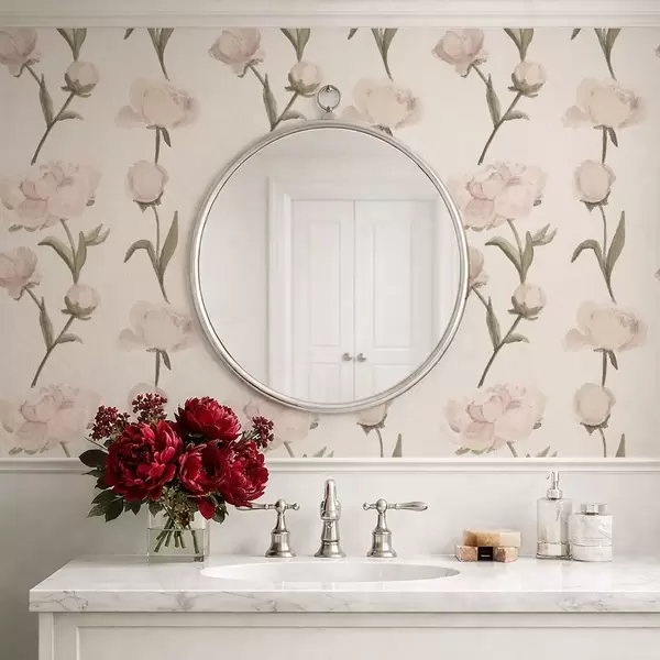 Tapetes Maigi rozā peonijas uz gaiša fona Nr. a01114