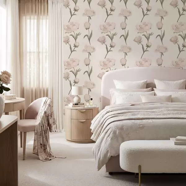 Tapetes Maigi rozā peonijas uz gaiša fona Nr. a01114
