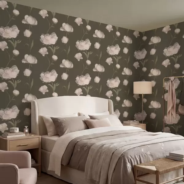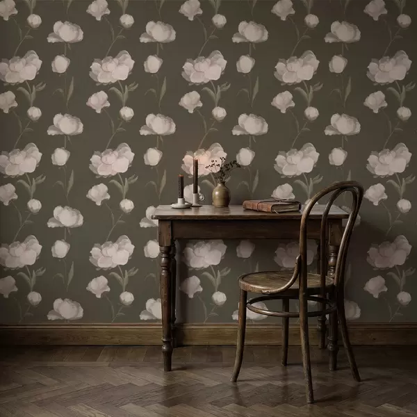 Tapetes Maigi rozā peonijas uz tumša fona Nr. a01114v1