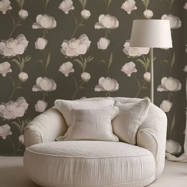 Tapetes Maigi rozā peonijas uz tumša fona Nr. a01114v1