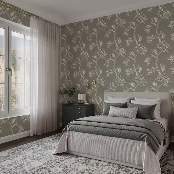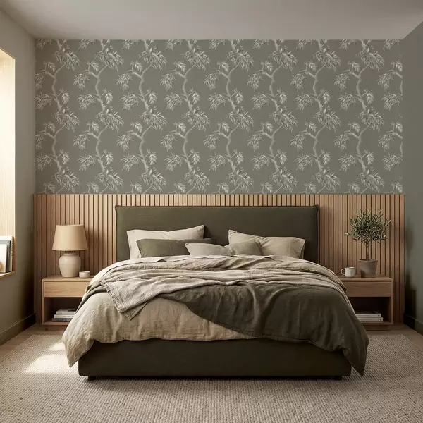 Tapetes Gaiša zaru ar lapām uz olīvu fona Nr. a01117v1