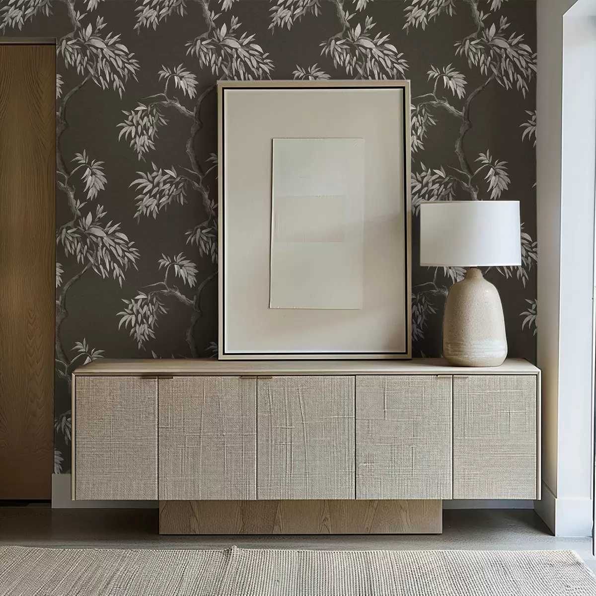 Tapetes Monochromatiska zaru ar lapām uz tumša fona Nr. a01117v2
