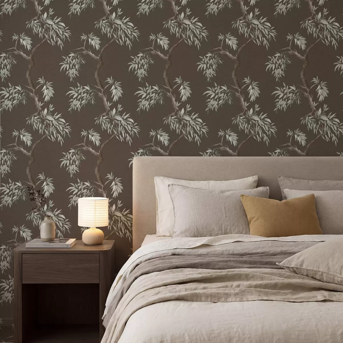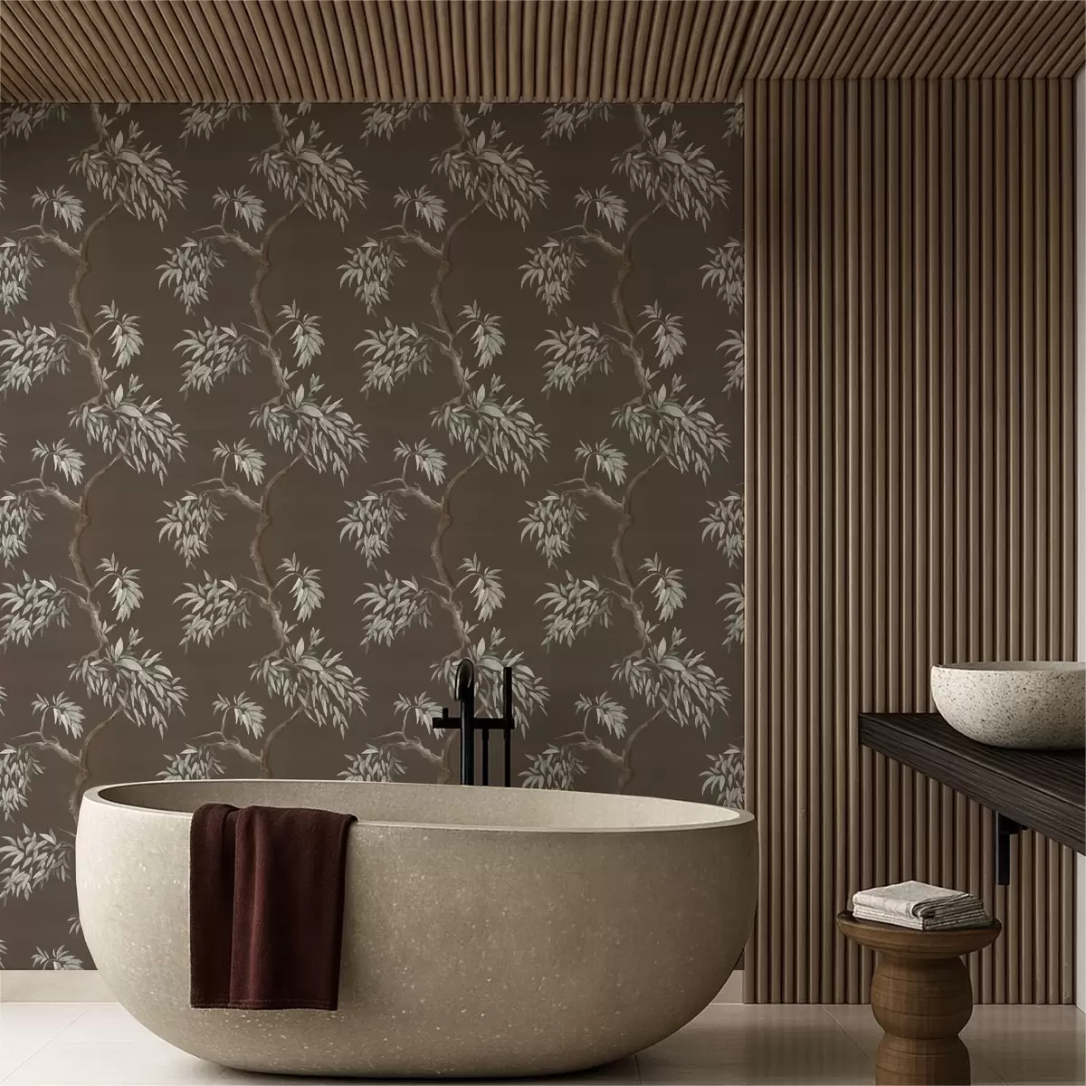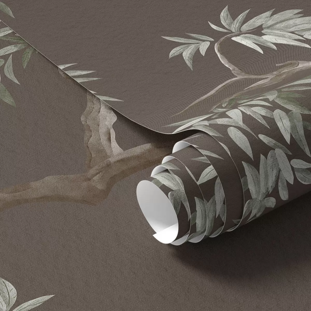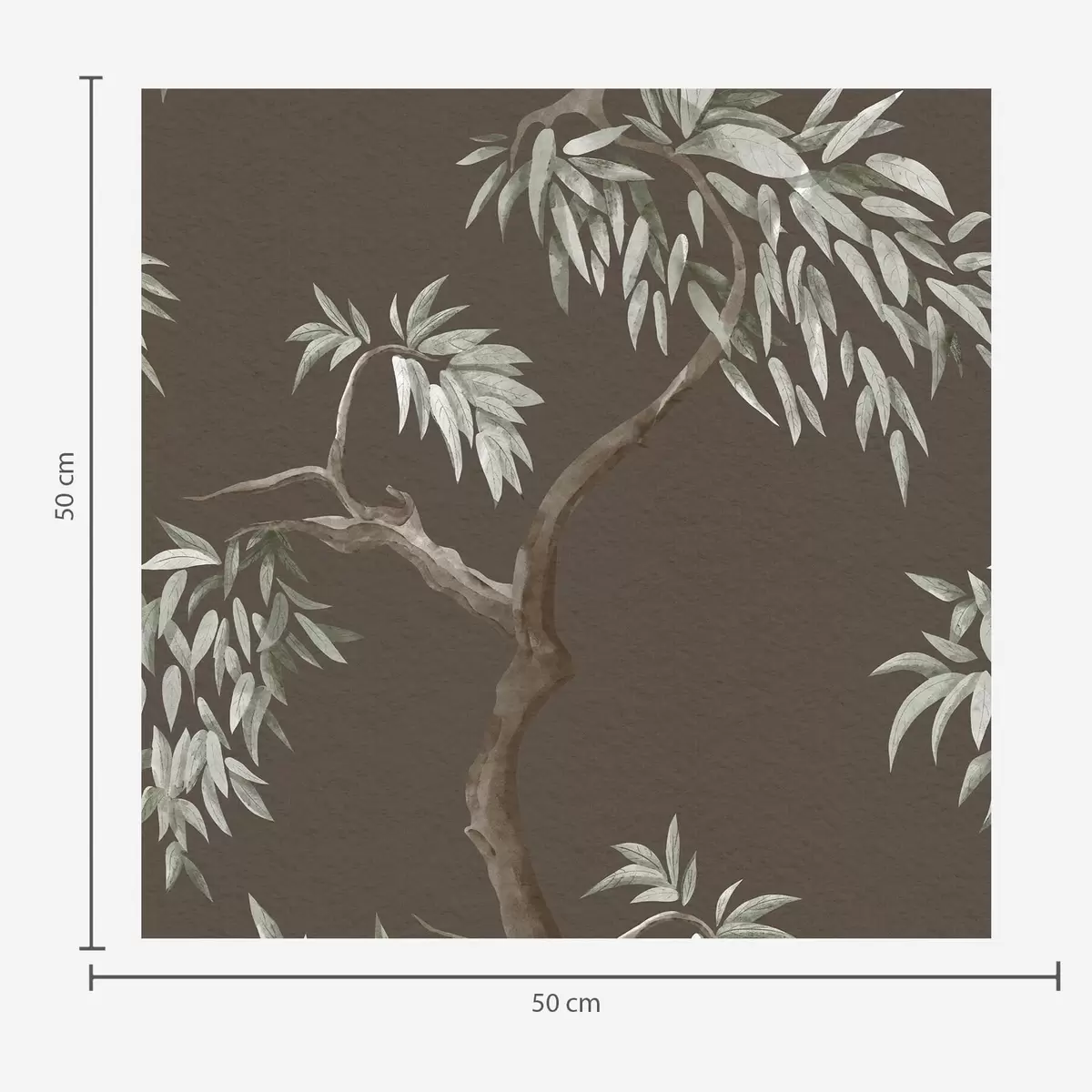 Tapetes Koka zars ar lapām uz brūna fona Nr. a01117v3