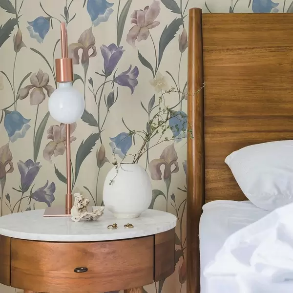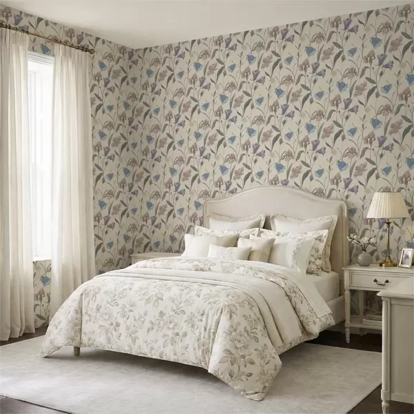 Tapetes Pastelkrāsas ziedu raksts uz gaiša fona a01118