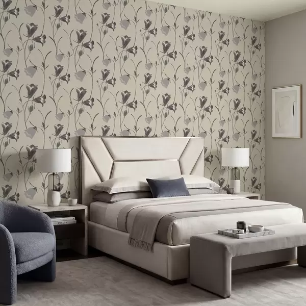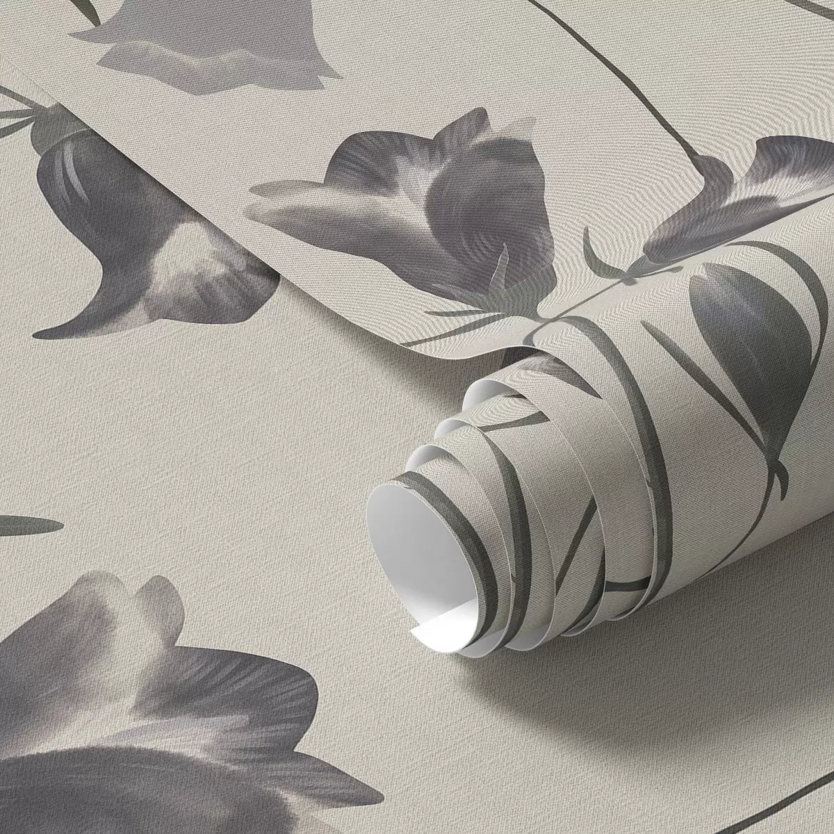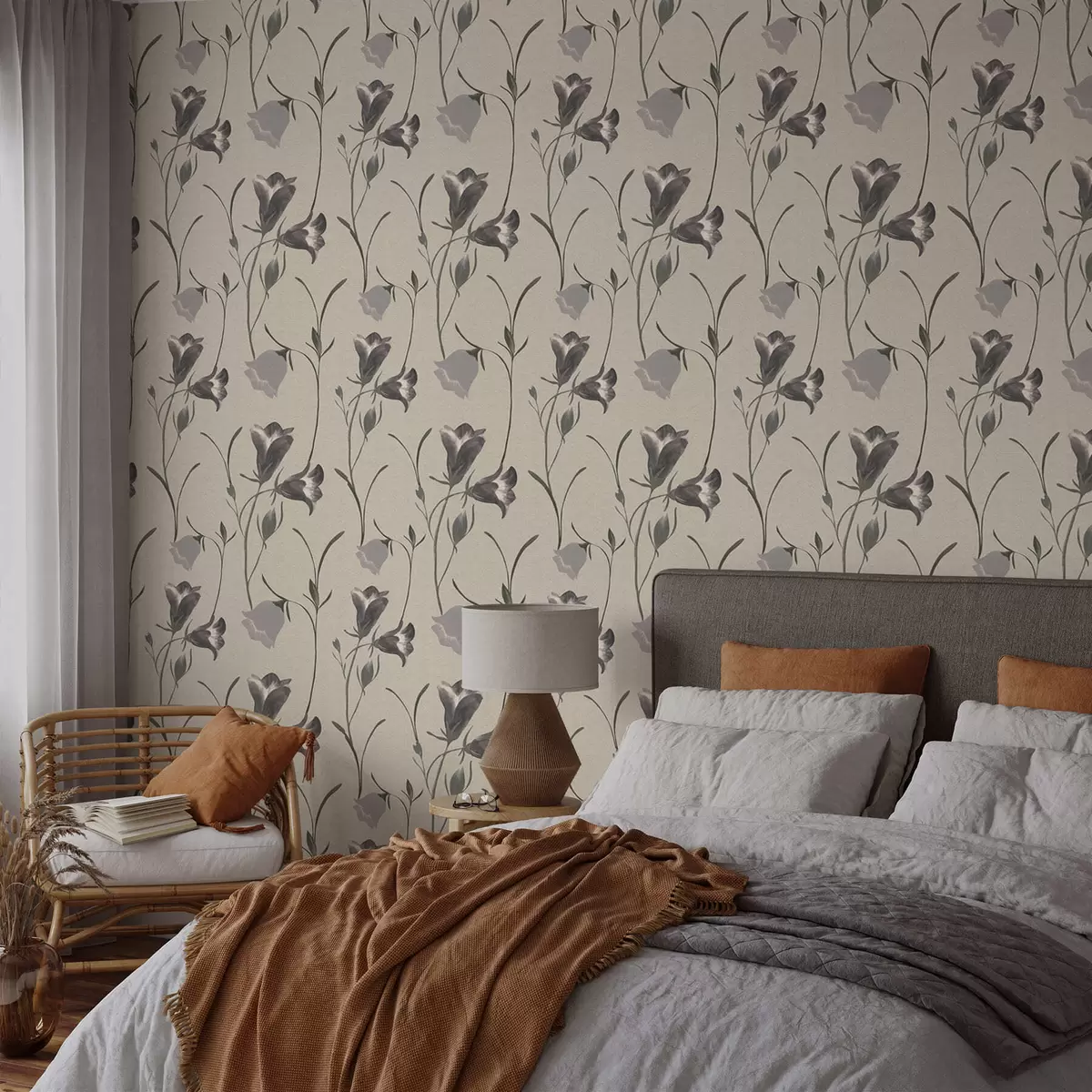 Tapetes Pelēki zvaniņveida ziedi uz gaiši smilškrāsas fona Nr. a01119