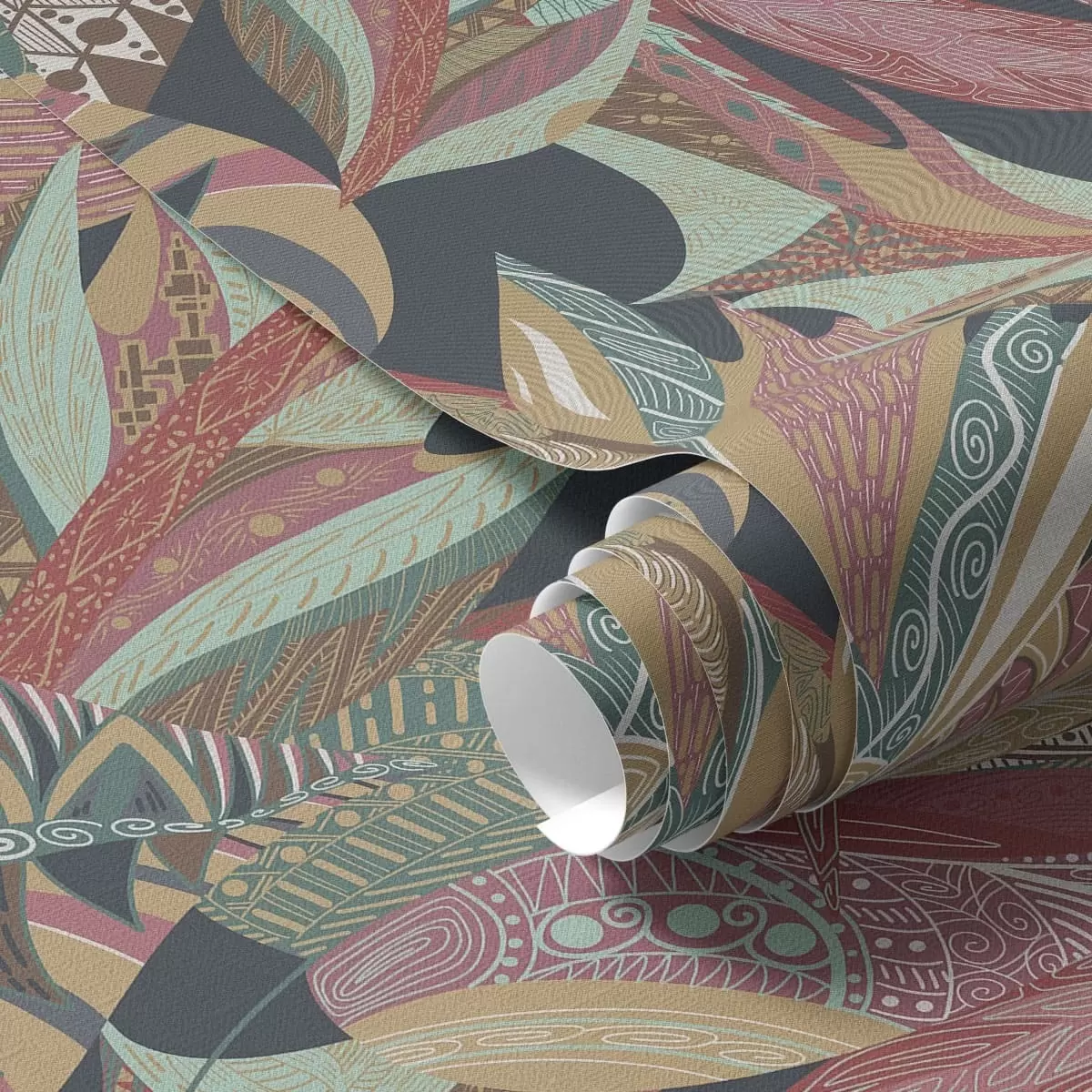 Tapetes Krāsainas rakstainas lapas uz tumša fona Nr. a01120