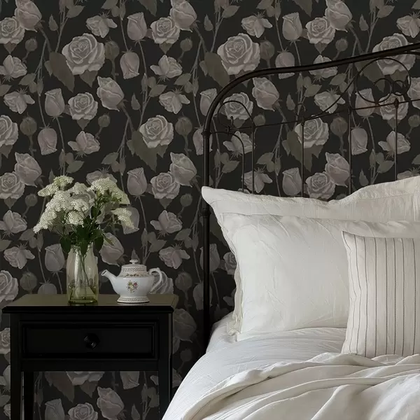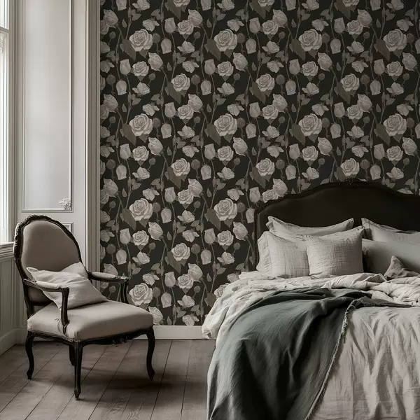Tapetes Ziedu raksts ar rozēm uz tumša fona Nr. a01123