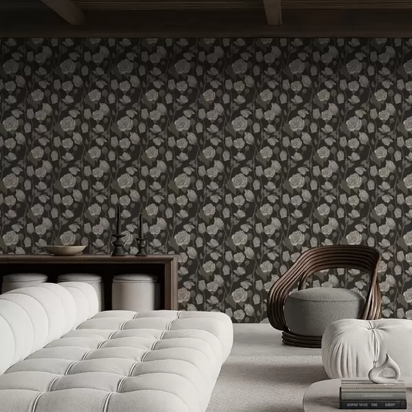 Tapetes Ziedu raksts ar rozēm uz tumša fona Nr. a01123