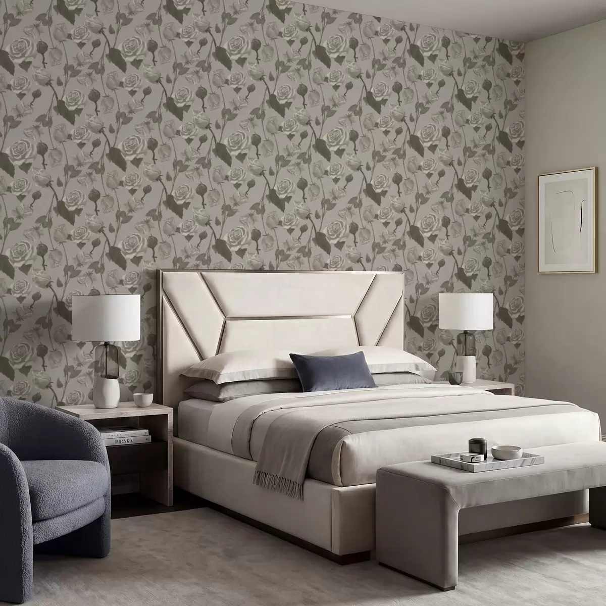 Tapetes Viegli ziedu raksts ar rozēm Nr. a01123v1