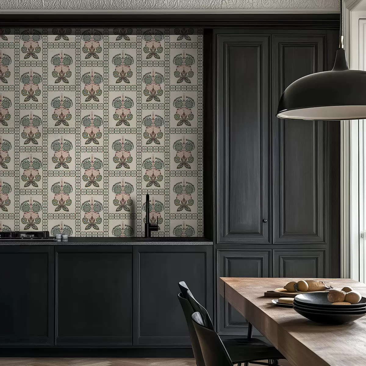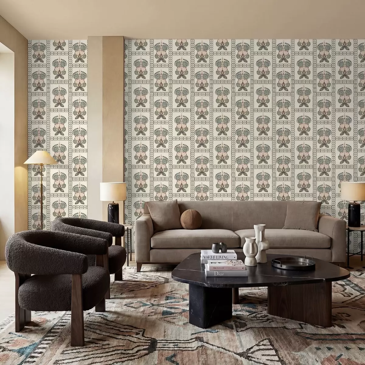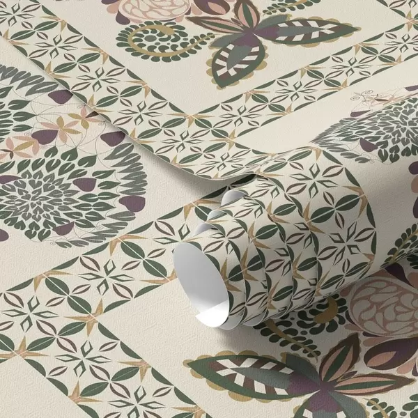 Tapetes Dekoratīvs raksts ar tauriņiem un ziediem Nr. a01125