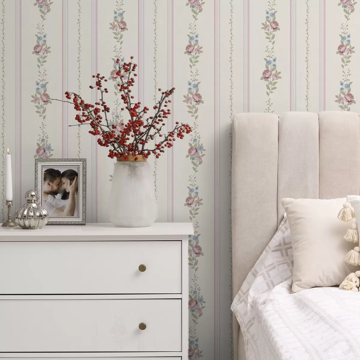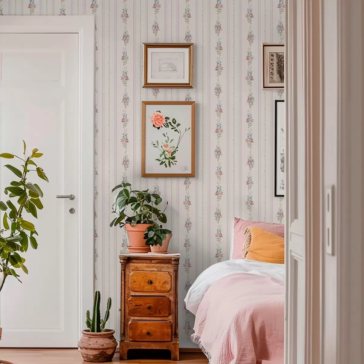 Tapetes Svītrains ziedu raksts maigās krāsās Nr. a01130