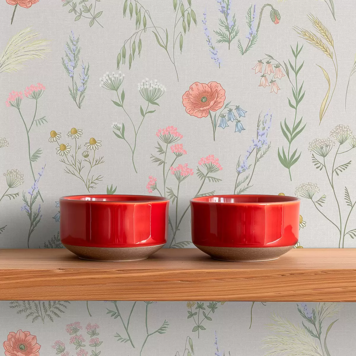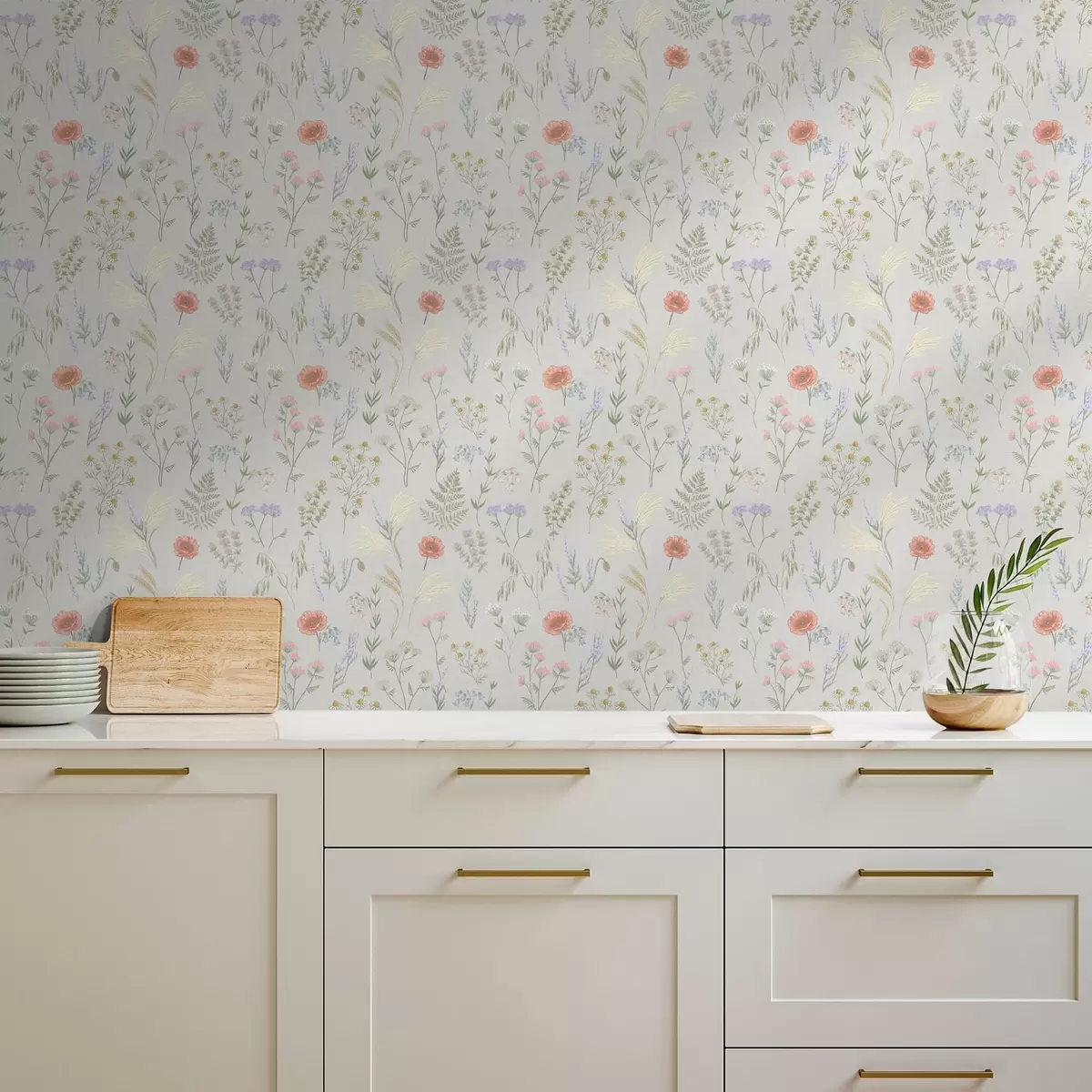 Tapetes Maigs savvaļas ziedu raksts uz gaiša fona Nr. a01152