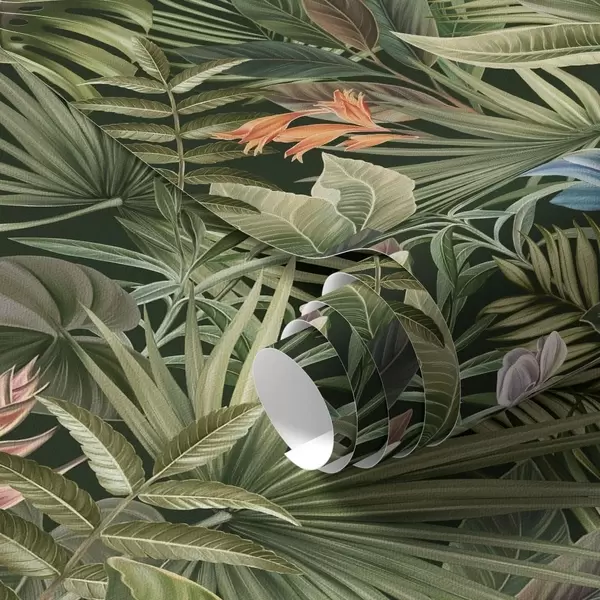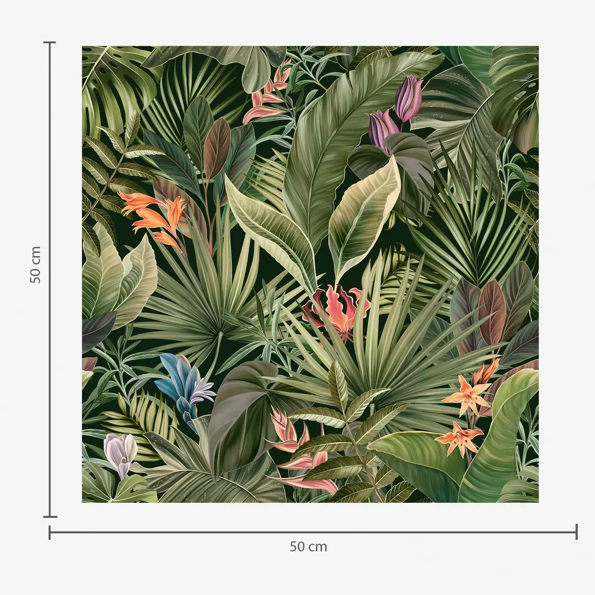 Tapetes Tropu lapas ar ziediem uz tumša fona Nr. a01153