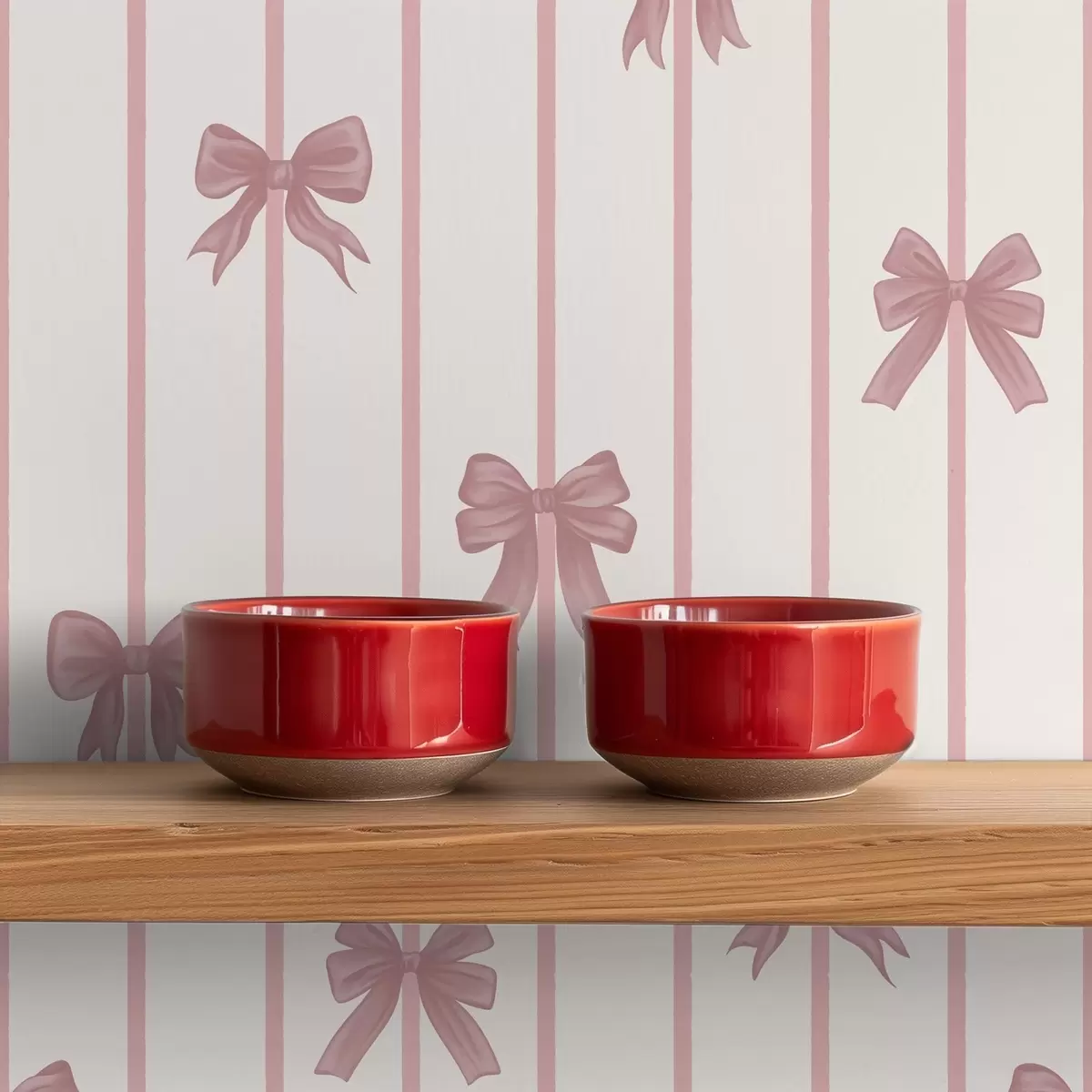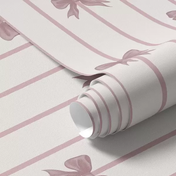 Tapetes Rozā lentes uz vertikālām svītrām gaišā fonā Nr. a01162
