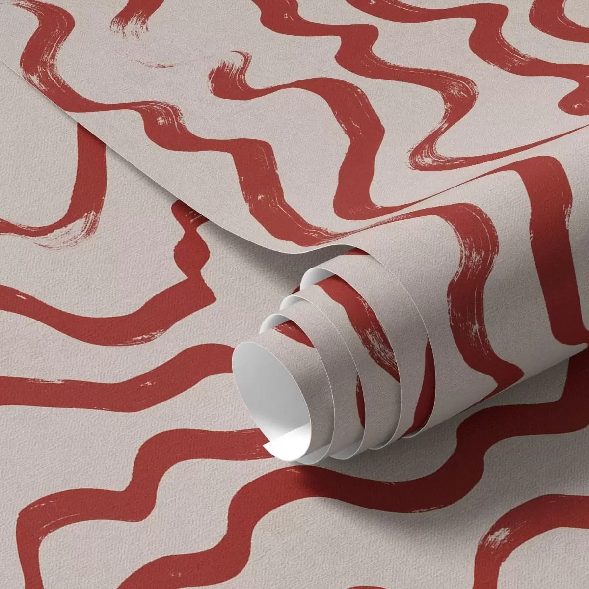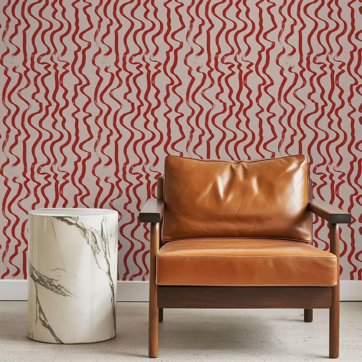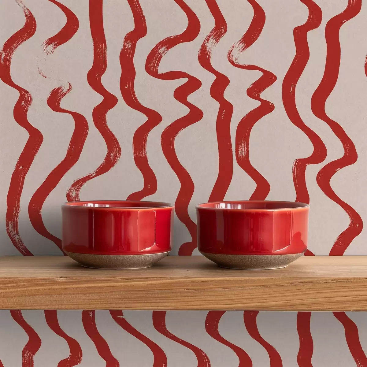 Tapetes Sarkanas viļņotas līnijas uz gaiša fona Nr. a01168